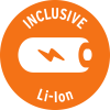 - Integrated lithium-ion battery 11.1 V/5.4 Ah with power bank function and charging indicator.