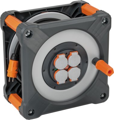 Accordingly, among other things, only cable reels may be used in which the carrying handle, crank handle and reel are made of insulating material or are covered with insulating material to prevent a damaged cable from causing a dangerous contact voltage on construction parts that can be touched over a large area. Another requirement for a construction site cable drum is the cable. This cable must be either an oil-resistant H07RN-F cable with a cable sheath made of neoprene rubber and a natural or synthetic rubber insulating sleeve or a H07BQ-F cable with a cable sheath made of polyurethane and a synthetic rubber insulating sleeve such as the Brennenstuhl BREMAXX PUR cable. In addition, construction site cable reels are equipped with an integrated protective alignment to prevent excessive heating of the cable and thus a potential fire hazard. Nevertheless, the cable should always be completely unwound from the drum even with a cable drum.